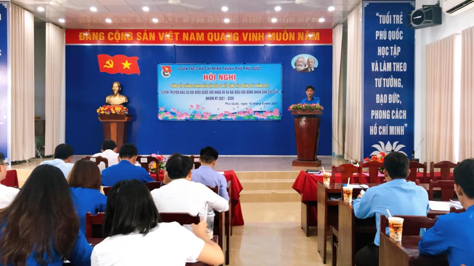 Thành Đoàn Phú Quốc tổ chức Hội nghị Tổng kết Tháng Thanh niên gắn Sơ kết công tác Đoàn và phong trào TTN quý I năm 2021, Đồng thời triển khai tuyên tuyền bầu cử Đại biểu Quốc hội khoá XV và đại biểu Hội đồng nhân dân các cấp nhiệm kỳ 2021-2026.