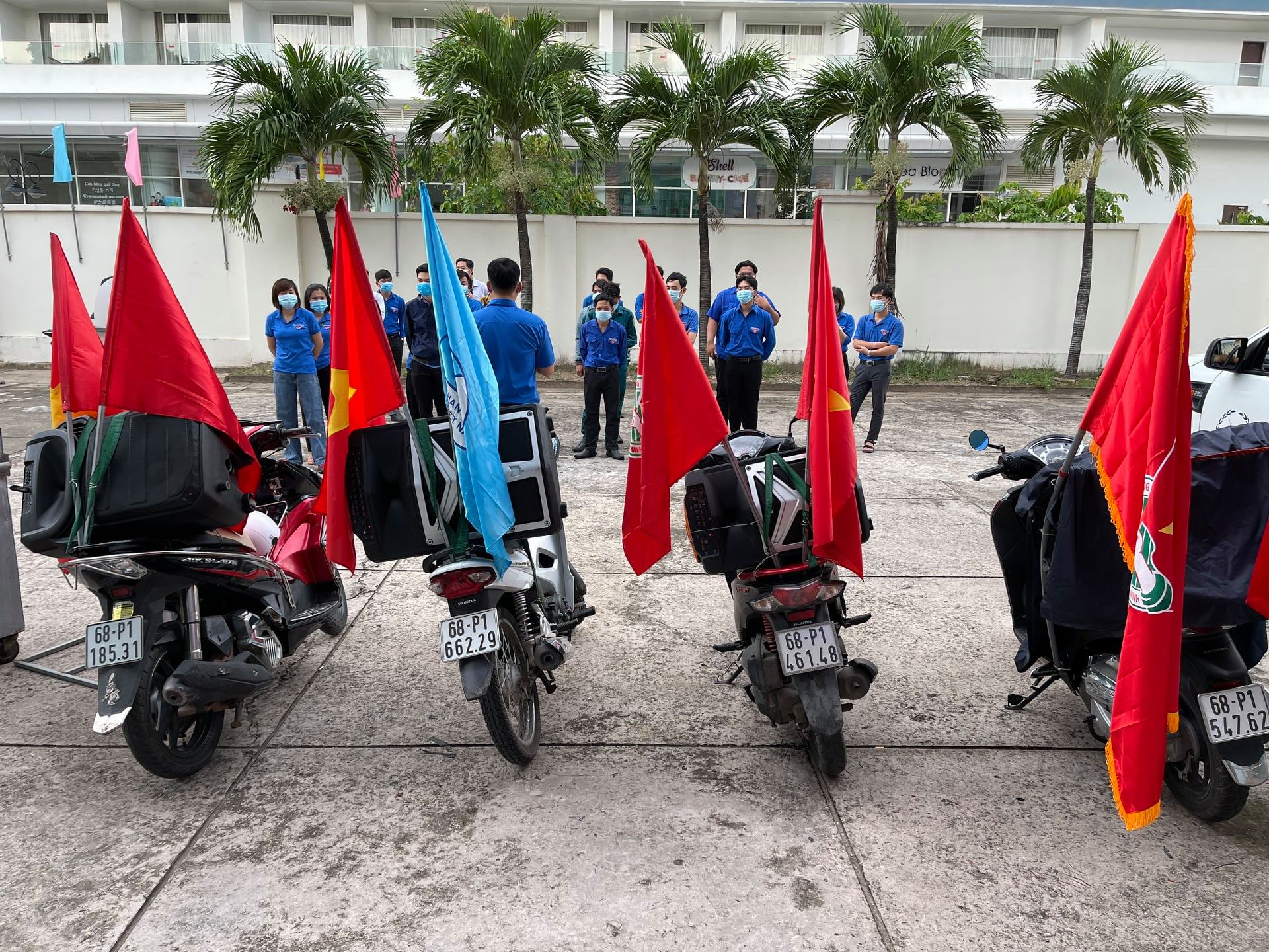 Đội hình gồm 01 xe ô tô thông tin lưu động và 06 xe mô tô, gắn máy được bố trí loa, âm thanh và pano tuyên truyền di động trên các tuyến đường trọng điểm trên địa bàn thành phố để nhắc nhở ĐVTN và bà con nhân dân các biện pháp phòng chống dịch bênh Covid-19 đặc biệt là thông điệp 5k của Bộ Y tế (Khẩu trang – Khử Khuẩn – Khoảng cách – Không tập trung – Khai báo Y tế), kêu gọi cán bộ, đoàn viên thanh niên và toàn thể nhân dân tiếp tục triển khai thực hiện nghiêm các biện pháp phòng, chống dịch bệnh Covid-19 theo chỉ đạo của Chính phủ, UBND tỉnh, UBND thành phố; tuyệt đối không chủ quan lơ là, mất cảnh giác, không để dịch xâm nhập, lây lan và bùng phát, bảo vệ tốt sức khỏe của cộng đồng.