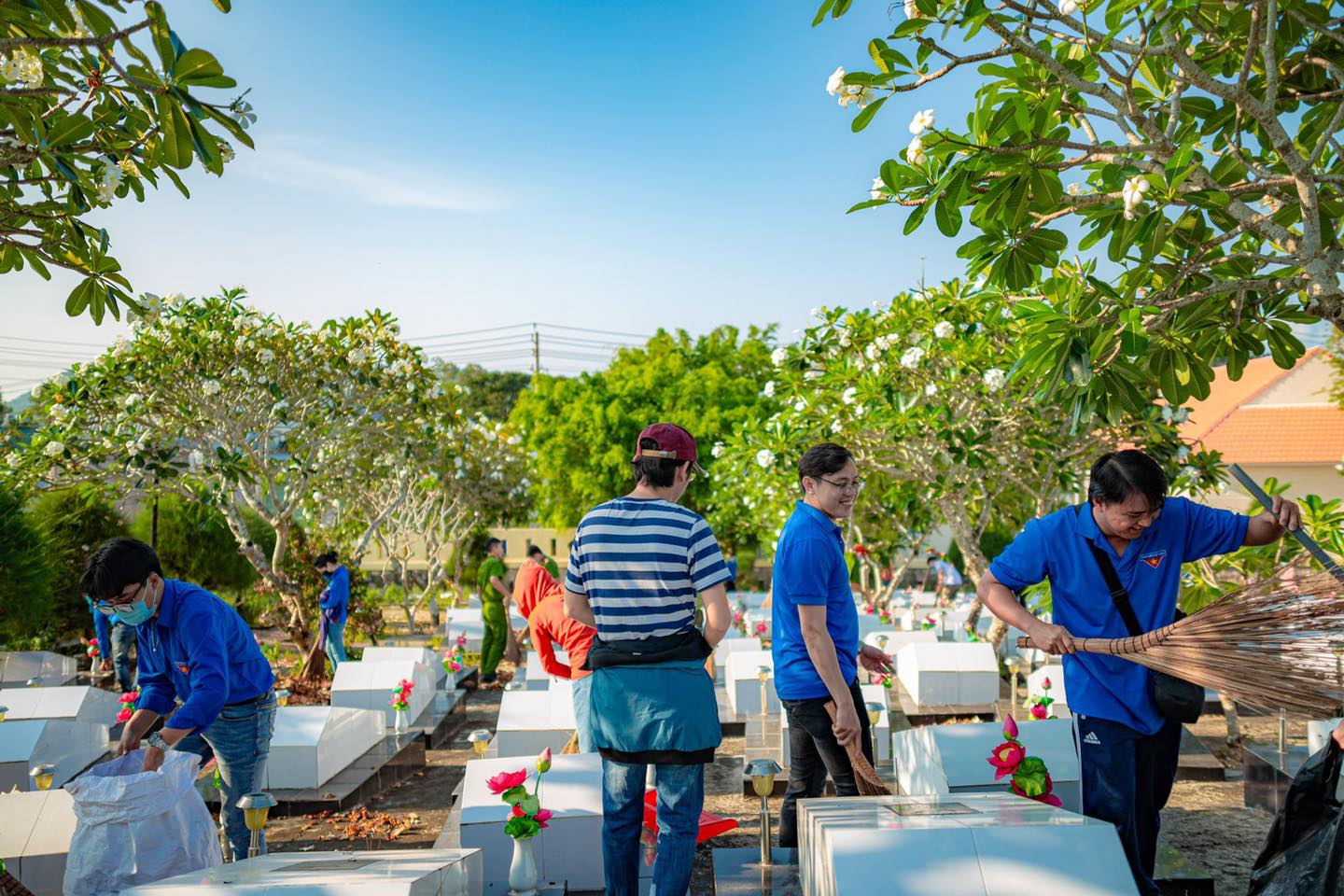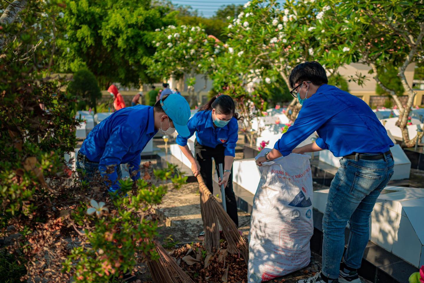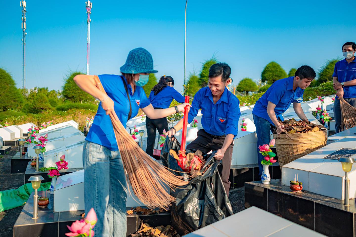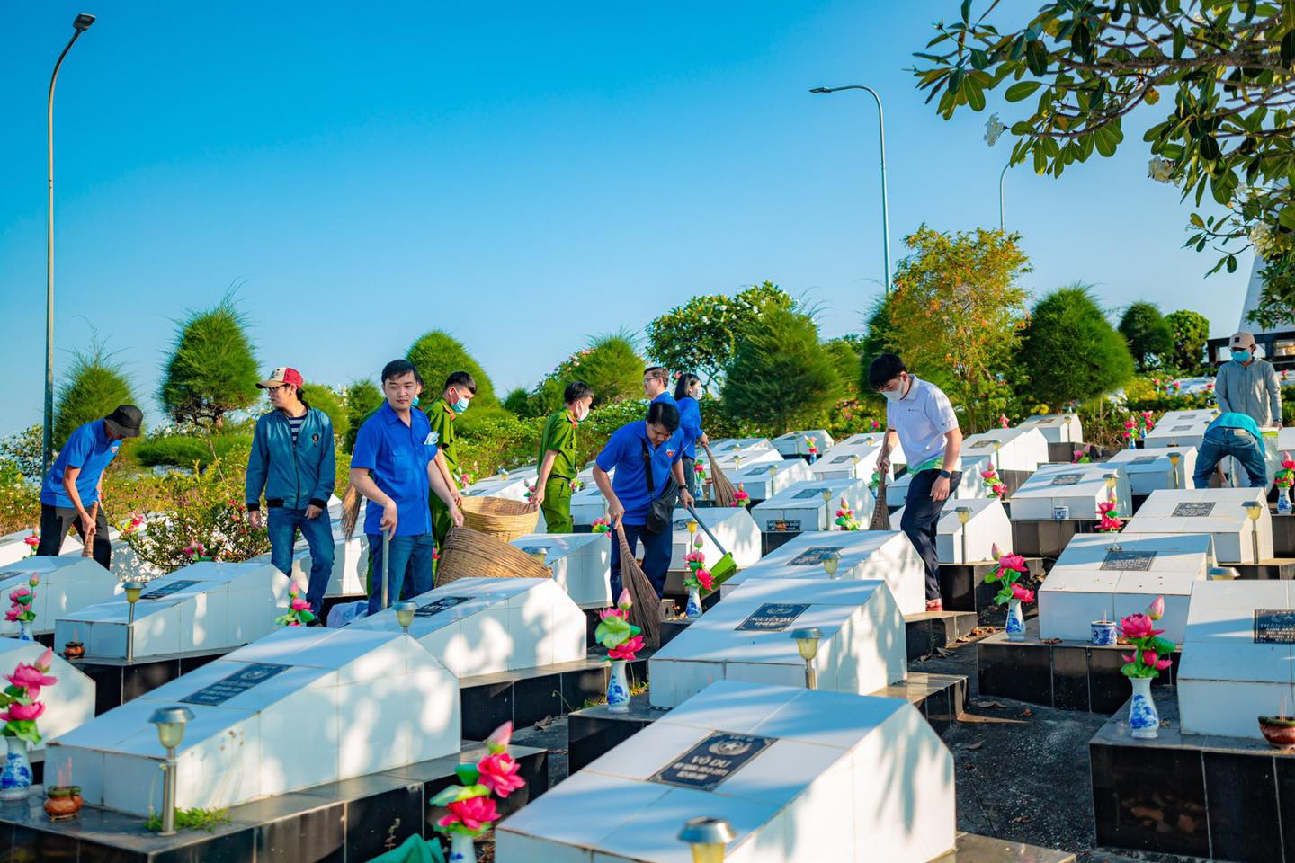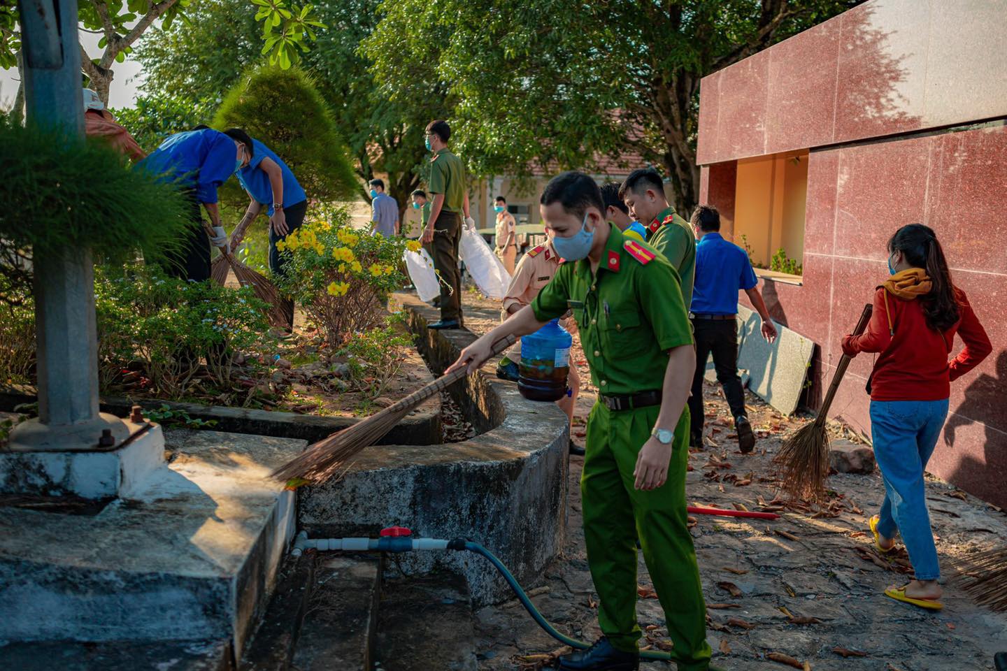- Thắp hương, dọn vệ sinh Nghĩa trang liệt sỹ thành phố